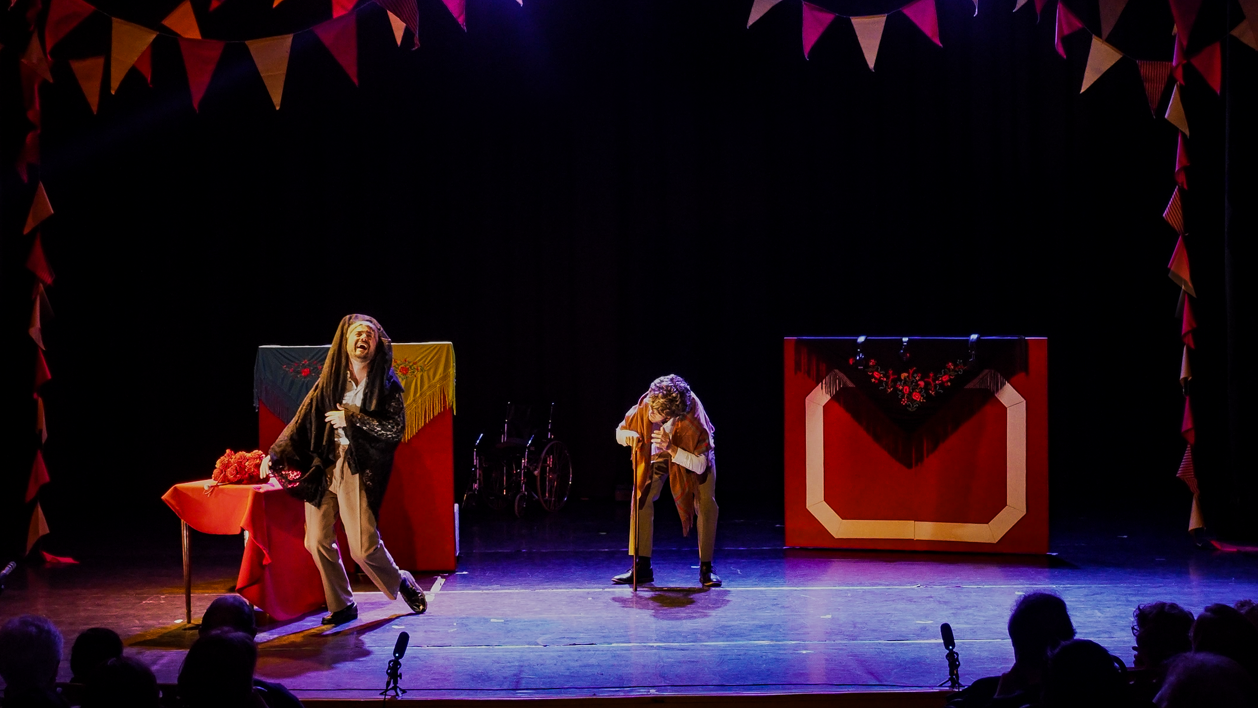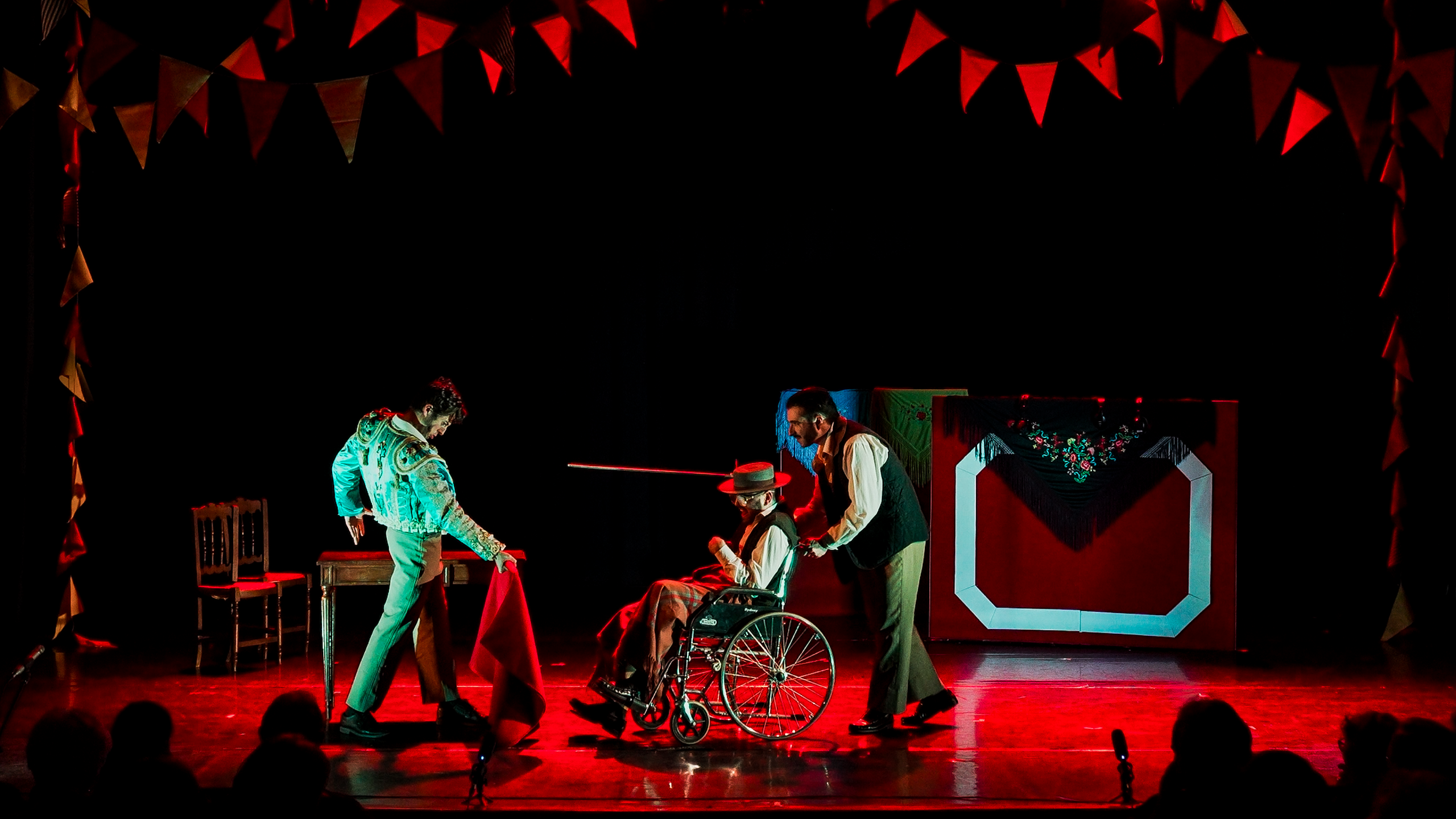 Haciendo uso de una marcada influencia de la tradición carnavalesca y farsesca del sur de Andalucía, la compañía se sirve del carácter ritual y de la riqueza simbólica de lo taurino para configurar una puesta en escena plástica y sonora con la que crea entornos muy dispares: la plaza de toros, el camposanto, el corral del sorteo de las reses, la gala de San Isidro, la finca de Montijo.